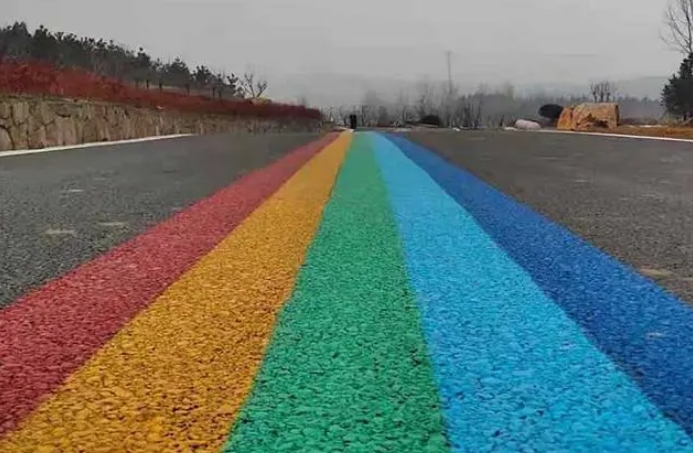 混合料的拌和:拌制彩色瀝青混合料的方法同普通瀝青混合料,但彩色瀝青混合料的拌和溫度不宜過高,一般最高溫度控制在180℃,膠結料的溫度在160-180℃即可,石料的溫度不得高于200℃,混合料溫度一般控制在160±10℃范圍內,實際溫度根據拌和樓和工地的距離、施工的天氣狀況來確定。